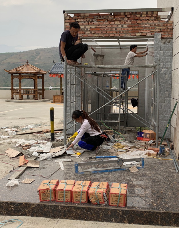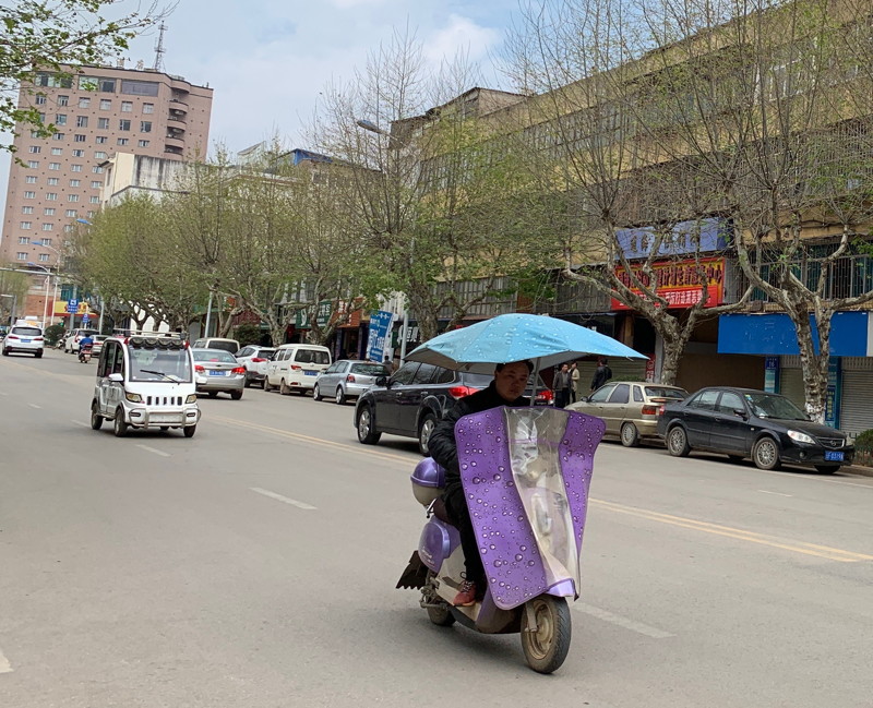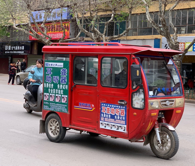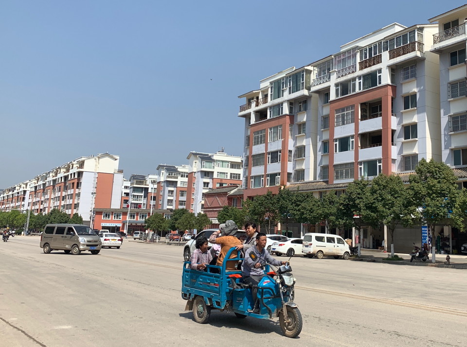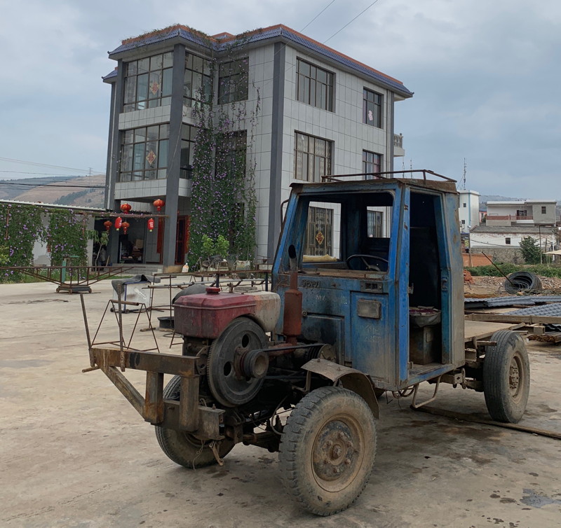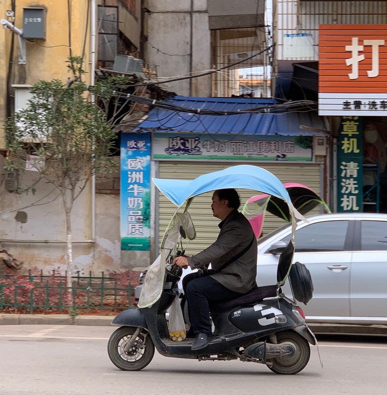 These small town stops also provided a glimpse into 'ordinary' life (although statistically I suspect the city dwellers were more typical). Towns were modern with long blocks of apartments, wide streets, and a fascinating mixture of old & new vehicles. Although most cars were petrol driven (as were the agricultural trucks with their fully exposed engines) almost all of the smaller vehicles were electric, including the tiny car models we'd seen in Dali. Lots of the mountain ridges had wind turbines along them and this emphasis on clean transport seemed well coordinated.