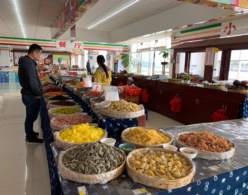 The roads were generally very good (although there were some very bumpy sections, often as we approached a city) and clearly signposted in both Chinese and English. Service stations were frequent and very well maintained with clean toilets, large shops selling snacks & travel essentials (some had restaurants too but we never ate in one), and often nicely laid out rest areas in addition to fuel & garage services.