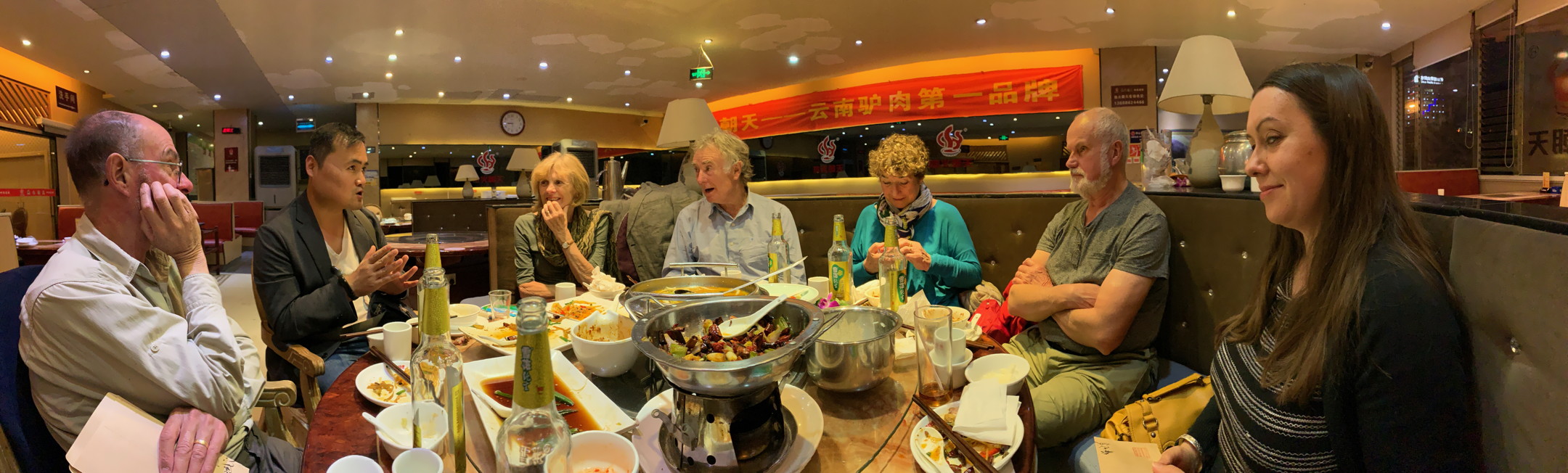The meal was another splendid feast, made poignant by knowing we'd be off on our separate paths next morning. Leon presented us with beautifully written Chinese equivalents of our names, his calligraphy hobby revealing a high level of skill & artistry. I found myself nominated to thank him for being our guide and managed to pull off an impromptu speech pretty well, if I say so myself. Contact details were exchanged, thanks and appreciations were shared, and slowly we rose and meandered back to the hotel.