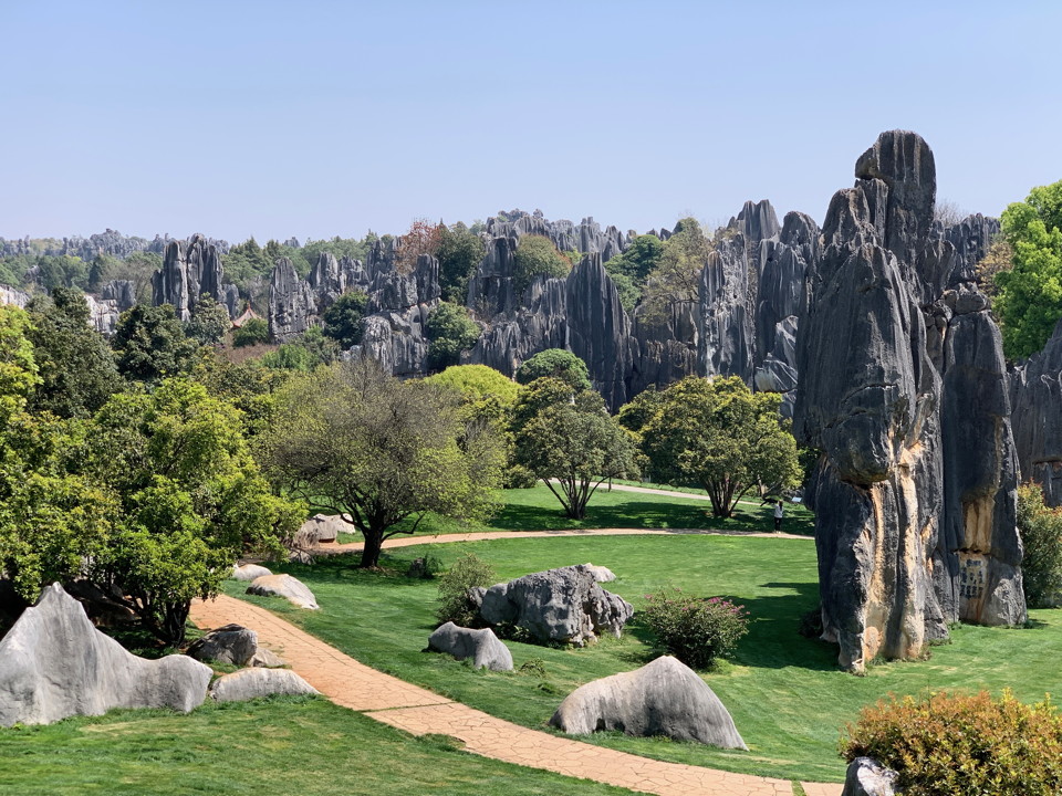From Jianshui we were heading back to Kunming for our last night of the tour but on the way we'd be stopping at the Stone Forest of Shilin, a collection of volcanic rock formations that had been granted UNESCO World Heritage status and was heavily promoted in the brochure. As we approached the area we saw dark outcroppings of rock emerging from the rich red earth, building up the expectation.