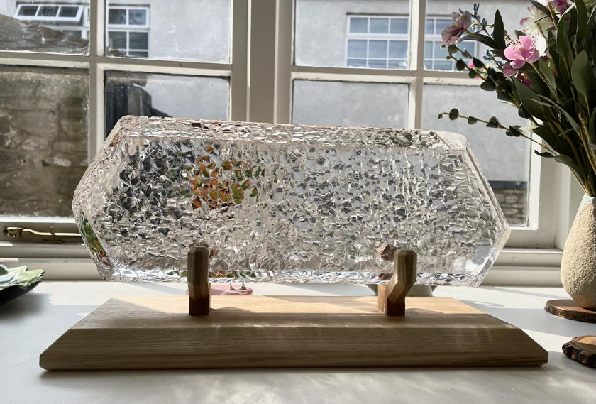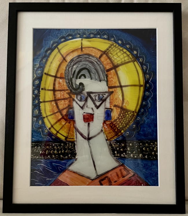We'd agreed early on that family members could take what they wanted from Vi's house but I'd not found much that called out to me. I'd never lived there - I'd moved out from the previous family home in my late teens - so it wasn't stacked with associations from my childhood. Apart from one, a painting of a forest scene that had hung on the wall from my earliest memories and had been carried from house to house over the years, usually ending up in a toilet or dark corner. Nobody could remember anything about it (or wanted it) but I realised it was probably my oldest memento and it now hangs in my home. A more recent artwork was a self portrait by my sister Terri that she'd painted for Vi and that I'd always admired, this was graciously released to me. And finally one of the giant quartz crystals that my father had grown as part of his work. I hauled this back home (it weighs a ton!) and had a stand made to hold it on my living room window sill and let the light stream through.