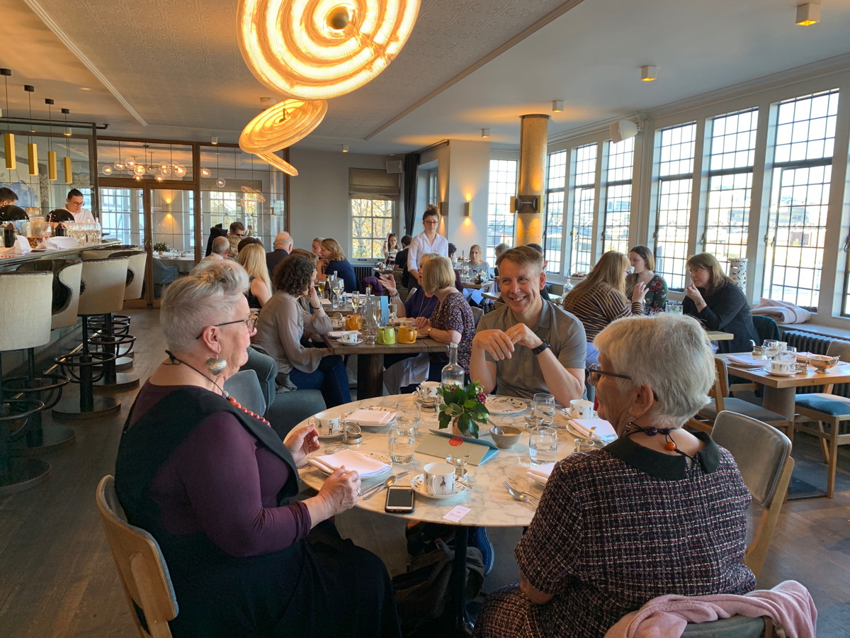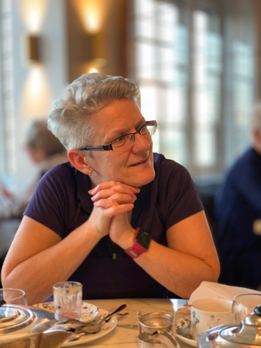 With the decision making dealt with we settled back for the main business of the day - chatting & catching up while munching our way through a literal tower of comestibles. In recent years we've become much better at keeping in touch so there's rarely any big announcements or revelations when we meet but somehow we still manage to find more than enough conversation to fill the available time. The eating progression - sandwiches, scones, then cakes - provides a convenient indicator of how much you've been talking, if the others are well ahead of you then maybe it's time to sit back & listen, if you're already onto the profiteroles when people are still reaching for the clotted cream & jam then it's probably good to speak up. The cake stands & teapots slowly emptied while we shared how we were doing and indulged in some reminiscing over memories of times past.